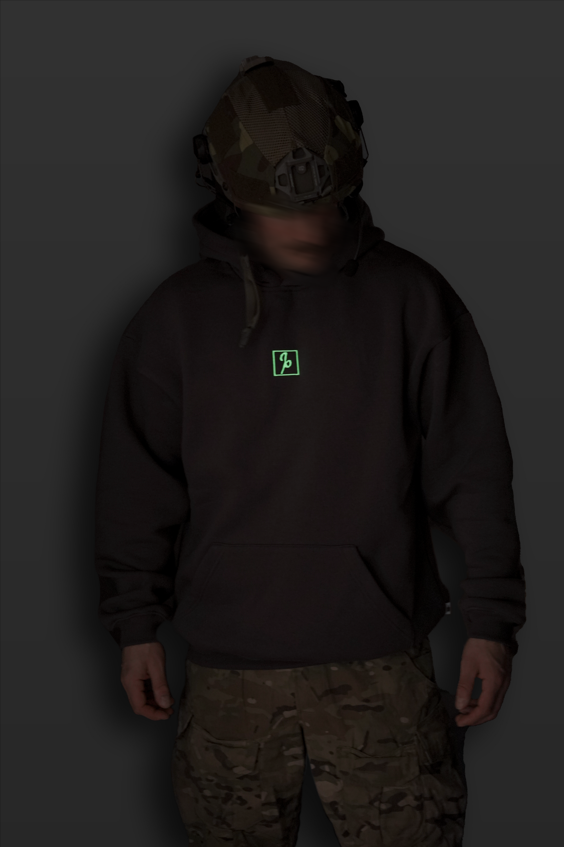 Koot ovat eurooppalaiselle kropalle suunniteltuja. Suunniteltu Suomessa, ja leikattu ja ommeltu Puolassa. Brodeerattu, pimeässä hohtava logo rinnassa (näyttää päivänvalossa tavalliselta valkoiselta), silkkipainettu printti selässä.